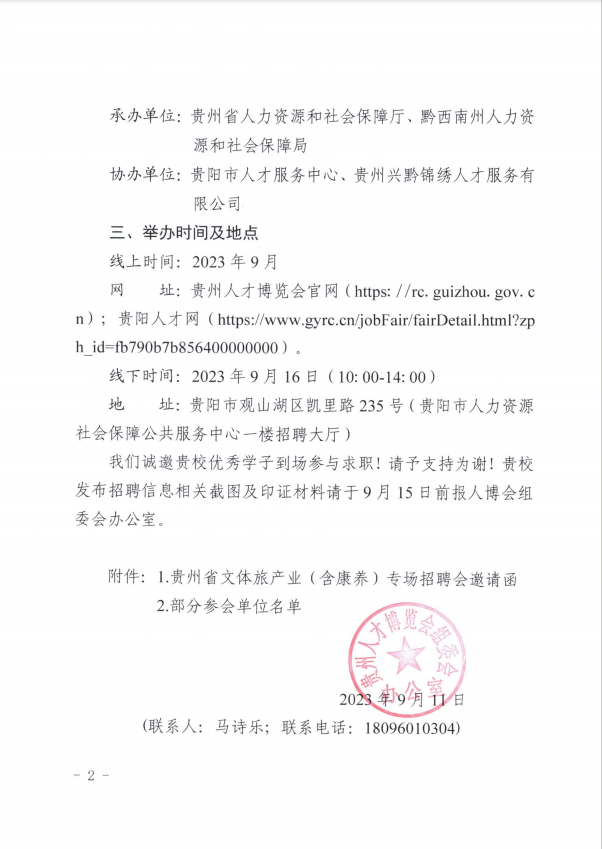 关于商请发布贵州省文体旅产业(含康养)专场招聘会信息的函