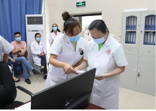 医疗服务中心点位长杨慧到指挥部报告工作场景演练