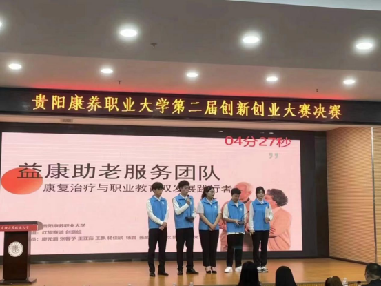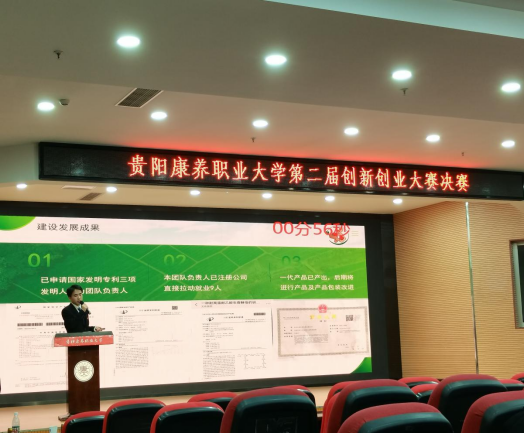 经过前期线上初评和线下复赛,共评选出29个优质项目进入决赛。答辩现场,各支参赛团队运用PPT和短视频逐一对参赛项目进行精彩展示,并就专家提出的问题进行答辩,经过激烈竟争,获得一等奖的项目是:《 “枣”起“枣”睡——拐枣全分子量玻尿酸功能性 饮品开发》、《康体精灵》;二等奖项目是:《益康一康复治疗与社区康复双发展践行者 》、《灵肌一动——青冈芝运动康复系列产品开发项目》、《福盈一生,康享晚年》、《奥普恩视E家——搭建全国首款视光人才培养平台助力国家光明行动》、《药遇绣染——中药与刺绣蜡染文创产品 》;三等奖项目是:《AD助手——阿尔兹海默病数字化干预系统》、《山有木兮—特色文创产品开发计划》、《多多益“膳”——专注老年康养 食出健康生活》、《星星守护者——关注孤独者儿童》、《黔苗天琛——赋能红稗致富路,托起乡村 振兴路》、《药艺坊——中医药传统文化手工艺品》、《cili酵茨梨一康养新秀黔地刺梨,科技赋 能健康中国》
